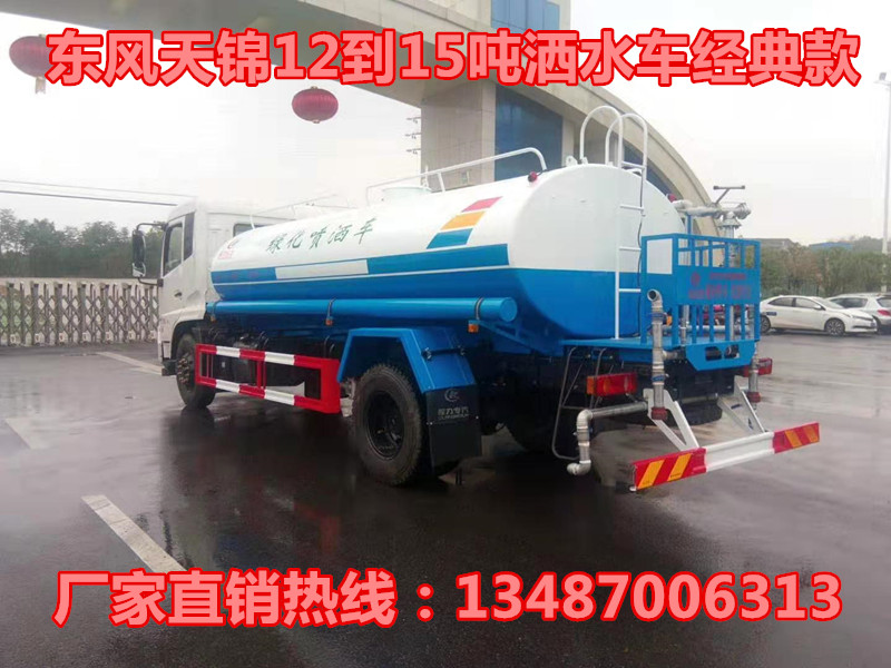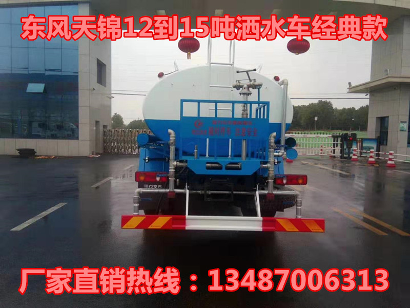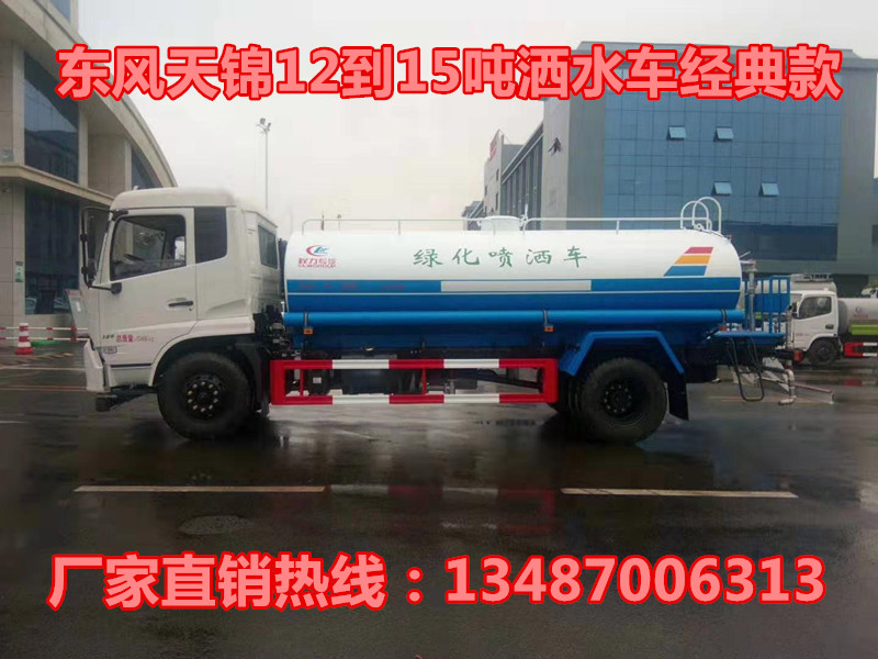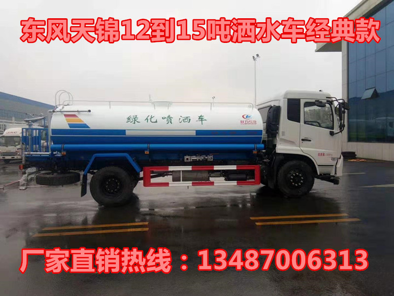 底盤配置:采用東風天錦豪華底盤,康明斯180馬力發動機,6檔變速箱,5噸前橋,9噸后橋,軸距4700mm,10.00R20鋼絲胎,東風天錦前翻豪華駕駛室,帶原裝空調,ABS,行車記錄儀。 改裝配置:罐體采用5mm厚武鋼專用容積板制作,實際標準容積16立方,罐內隔板具有防波作用,以減低汽車行駛時罐體液體的沖擊。泵進泵出,消防栓接口,前沖、后灑、側噴、后工作平臺帶綠化水炮,垂直吸程≧7米,灑水寬度≧14米,射程≧28米,引水時間<5min,流量90m3/h。自流閥、濾網、帶自吸自排功能。兩根等長輸水管,金屬漆,其余標配。可加裝加裝藥盤、氣動控制閥、噴藥設備、非車帶泵動力等。