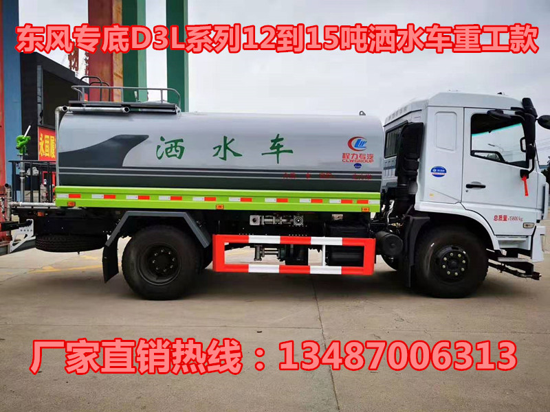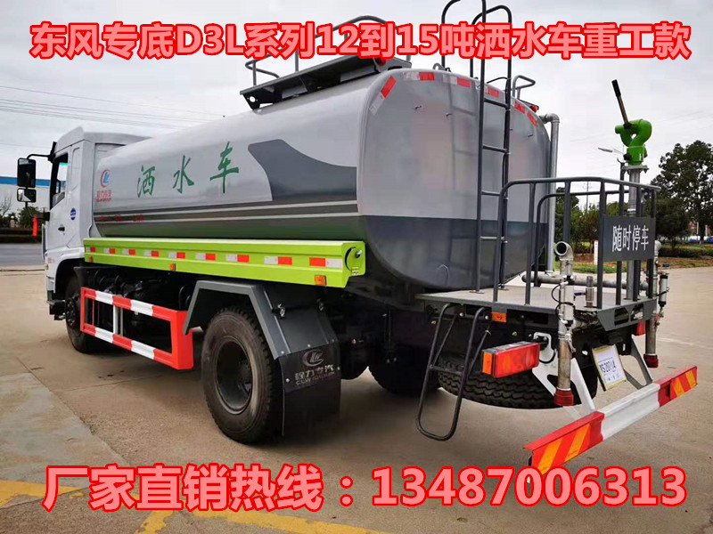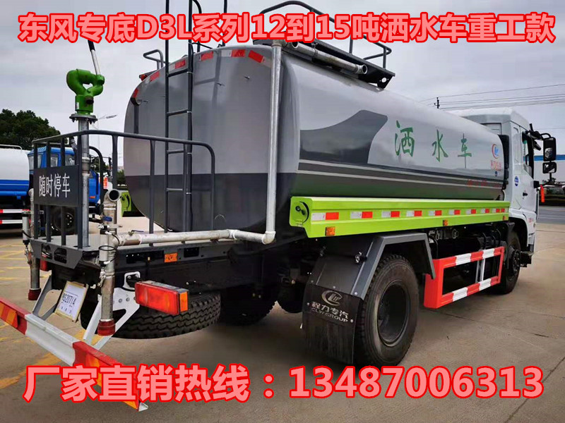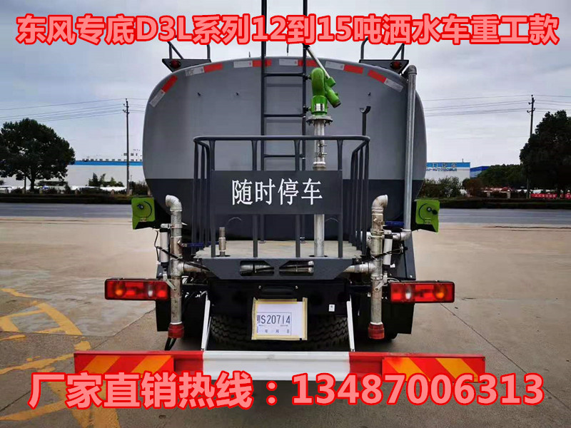 改裝配置:罐體采用4mm厚武鋼專用容積板制作,實際標準容積12.6立方,罐內隔板具有防波作用,以減低汽車行駛時罐體液體的沖擊。泵進泵出,消防栓接口,前沖、后灑、側噴、后工作平臺帶綠化水炮,垂直吸程≧7米,灑水寬度≧14米,射程≧28米,引水時間<5min,流量90m3/h。自流閥、濾網、帶自吸自排功能。兩根等長輸水管,金屬漆,其余標配。可加裝空調、加裝藥盤、氣動控制閥、噴藥設備、噴霧機組、箭頭燈、自流口等。