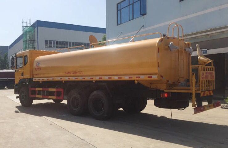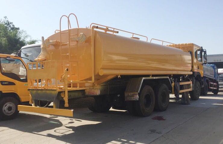 底盤配置:采用東風后八輪專用底盤,康明斯220馬力發動機,陜齒9檔變速箱,5噸前橋,10噸后橋,軸距4350+1350mm,10.00R20輪胎,單排前翻駕駛室,斷氣剎,帶空調,帶ABS。改裝配置:罐體采用5mm厚武鋼專用容積板制作,實際標準容積21立方(常規21立方),罐內隔板具有防波作用,以減低汽車行駛時罐體液體的沖擊。泵進泵出,消防栓接口,前沖、后灑、側噴、后工作平臺帶綠化水炮,垂直吸程≧7米,灑水寬度≧14米,射程≧28米,引水時間<5min,流量90m3/h。自流閥、濾網、帶自吸自排功能。兩根等長輸水管,金屬漆,其余標配。可加裝空調、加裝藥盤、氣動控制閥、噴藥設備、非車帶泵動力等。補充說明:此東風20噸灑水車若嚴格按照國家公告尺寸制作,實際標準容積為21立方,如果您所在的工況環境屬于山區或者路狀比較復雜的工地,建議選配康明斯220馬力發動機,發動機相比朝柴馬力更大,動力更足。