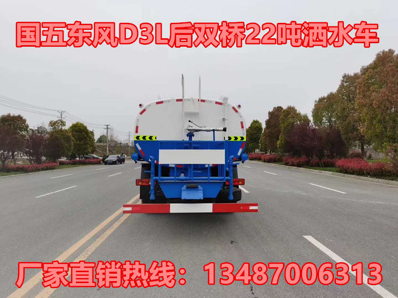 改裝配置:罐體采用國標5mm厚武鋼專用容積板制作,實際標準容積22立方,罐內隔板具有防波作用,以減低汽車行駛時罐體液體的沖擊。泵進泵出,消防栓接口,前沖、后灑、側噴、后工作平臺帶綠化水炮,垂直吸程≧7米,灑水寬度≧14米,射程≧28米,引水時間<5min,流量90m3/h。自流閥、濾網、帶自吸自排功能。兩根等長輸水管,金屬漆,其余標配。可加裝箭頭燈、氣動控制閥、倒車影像、噴霧機組等。