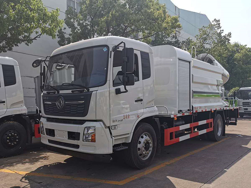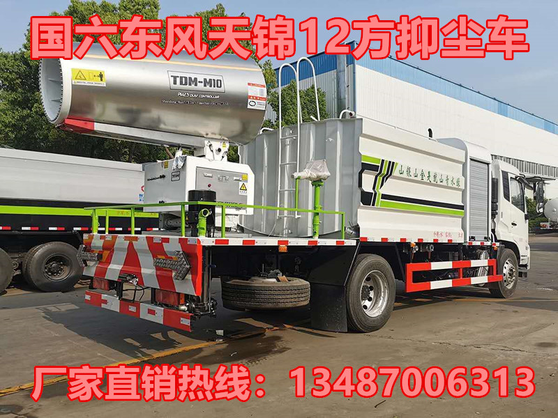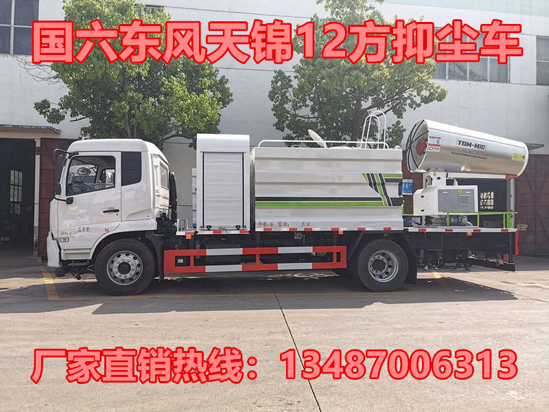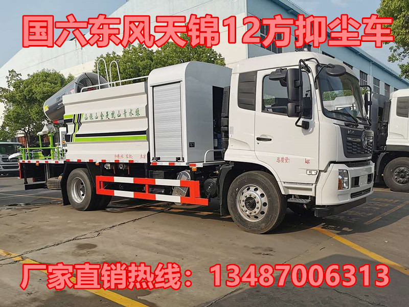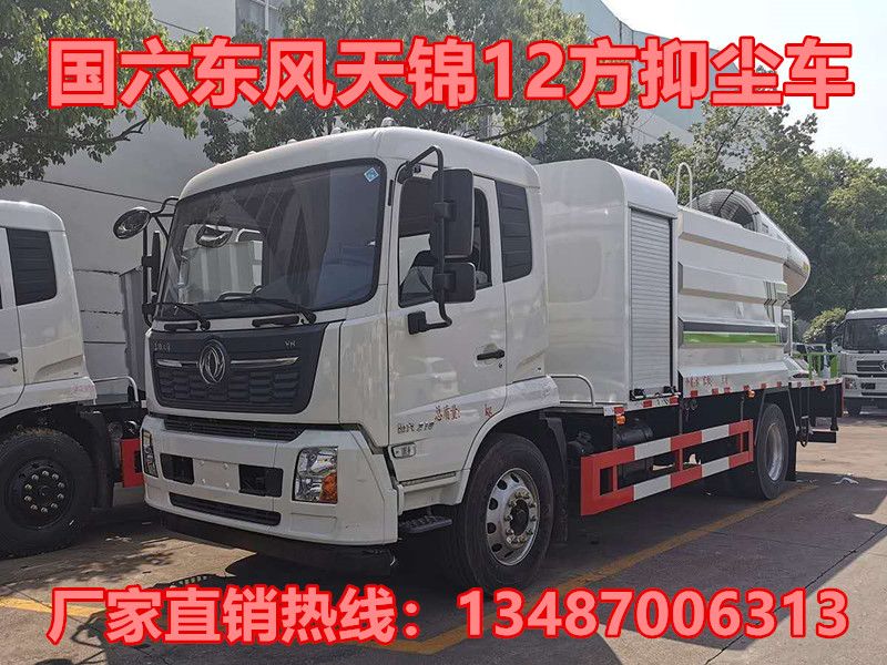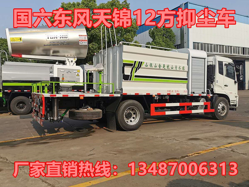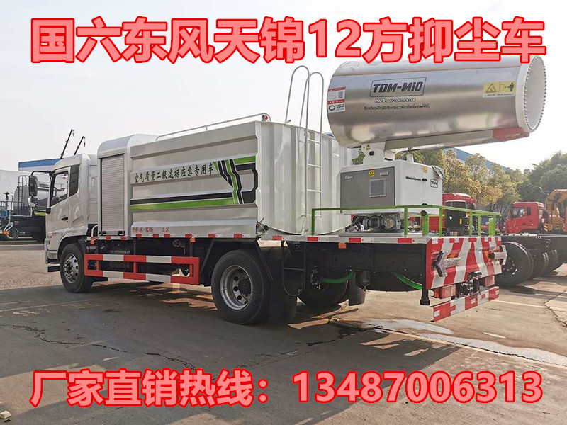 國六東風天錦12方抑塵車采用東風天錦國六康明斯210馬力發(fā)動機,底盤型號:DFH1180EX8,軸距:4700mm,輪胎:10.00R20 18PR鋼絲胎或真空胎,東風6檔變速箱,前橋4.5噸,后橋9噸,原廠空調,電動門窗,中控鎖,汽剎,ABS,排氣制動,國六排放標準。罐體容積:12立方,罐體鋼板采用Q235碳鋼鋼板,采用方形瓦楞設計,外觀大氣靚麗,后工作平臺加裝高效率車載式風送噴霧機,噴藥炮霧化效果好,可遠程噴霧,東風天錦抑塵車帶前沖后灑、側噴、平臺高炮、自流閥及消防接頭各1個、標配億豐泵或金龍泵,可選裝50-100米噴霧機。