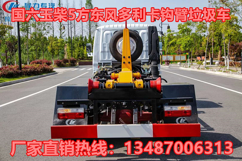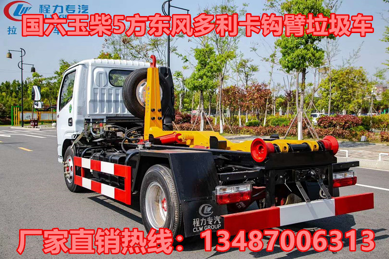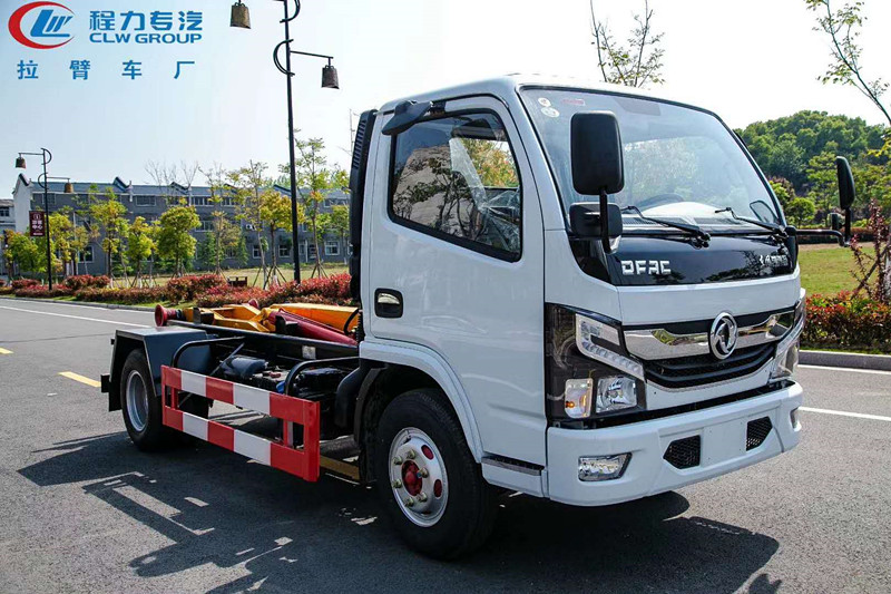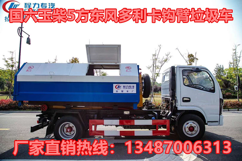4、拉臂垃圾車在裝垃圾箱工作時(shí),可根據(jù)車廂內(nèi)收集垃圾的重量來適當(dāng)加大油門,一邊垃圾廂能順利的勾起實(shí)現(xiàn)裝箱。