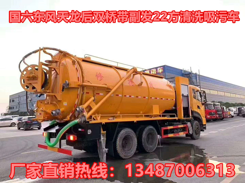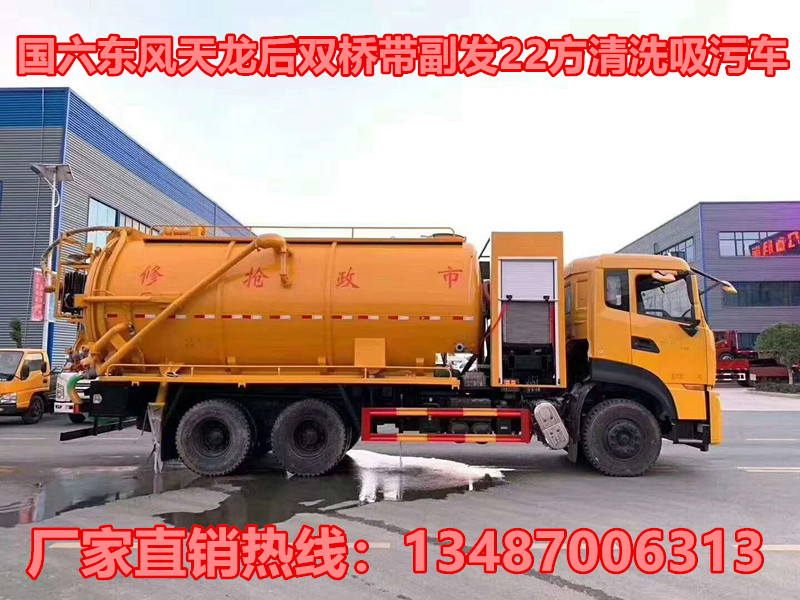 國六東風(fēng)天龍后雙橋帶副發(fā)22方清洗吸污車